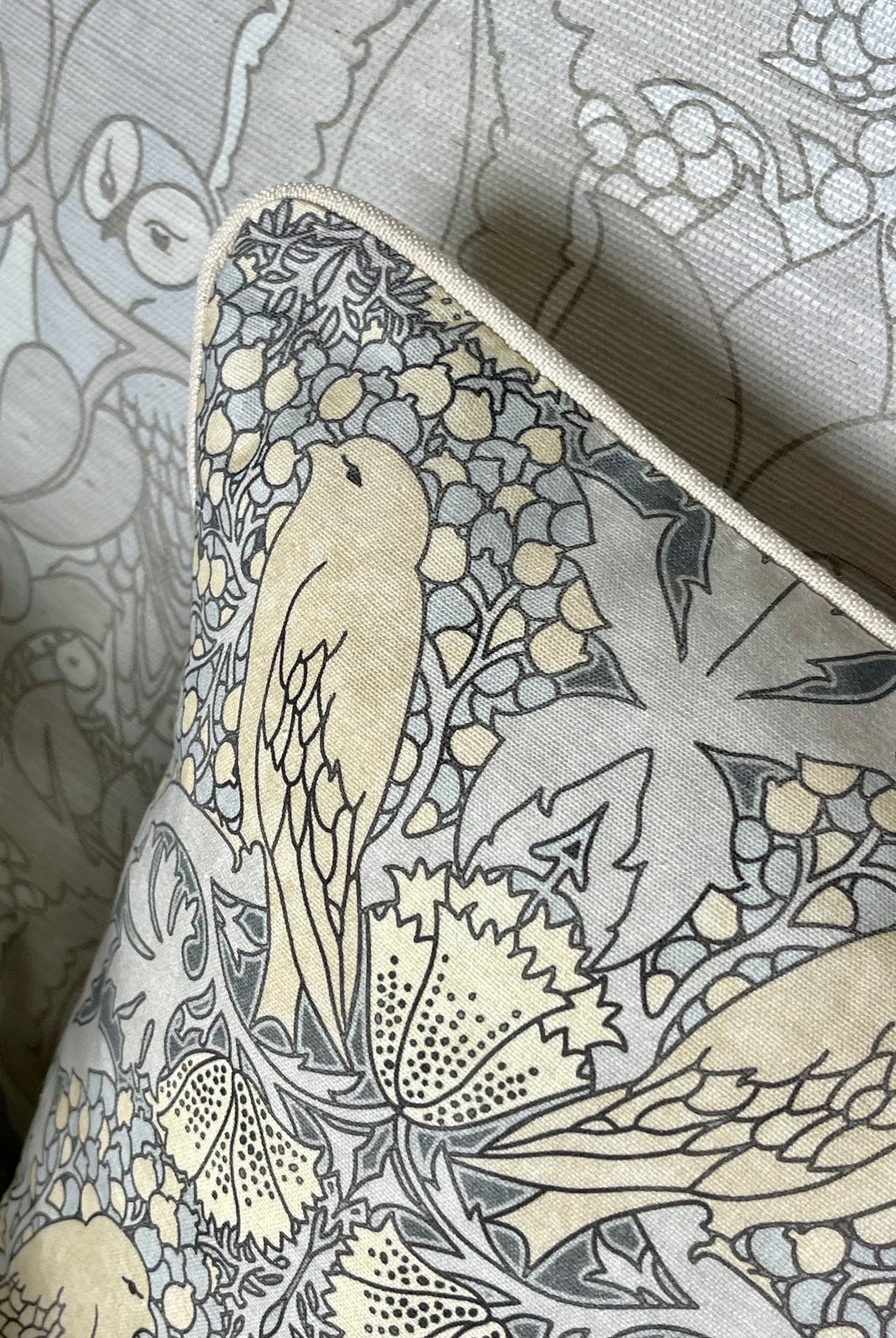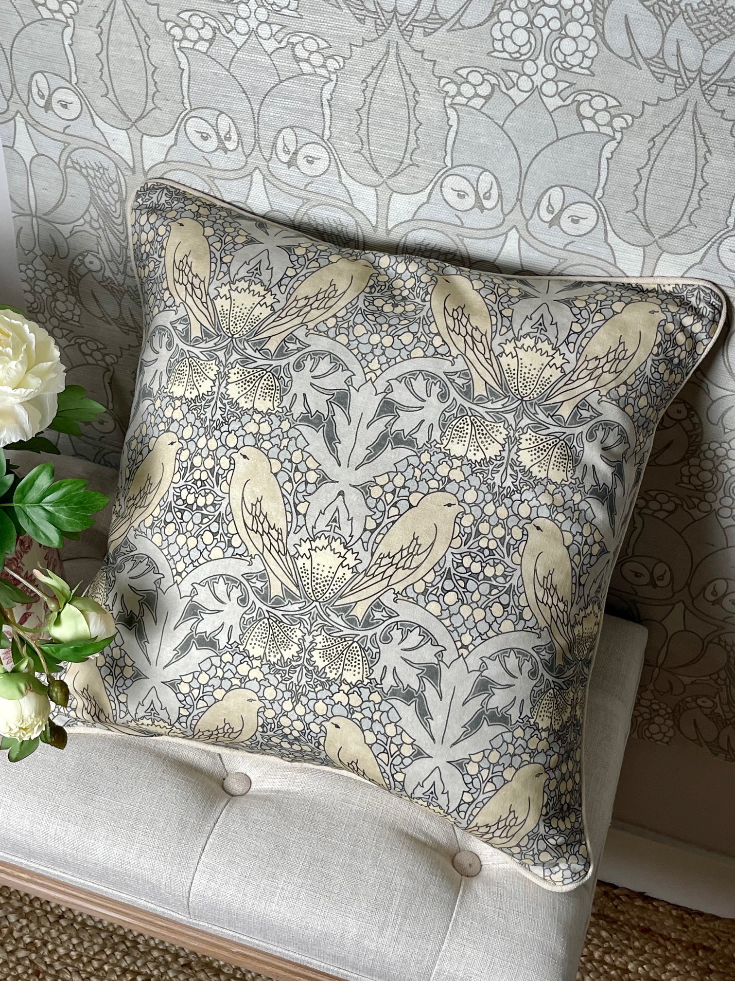 Bird & Berry Cushion - Slate & Parchment