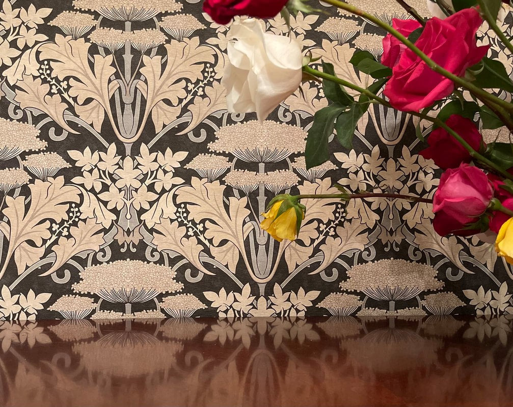 'Donegal' by C.F.A.Voysey is a delicate floral damask, faithfully reproduced from the original design by Charles Voysey, the famous English architect and textile designer.