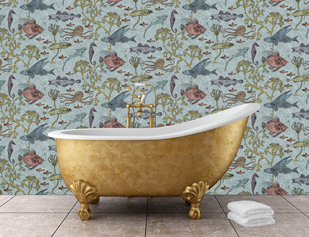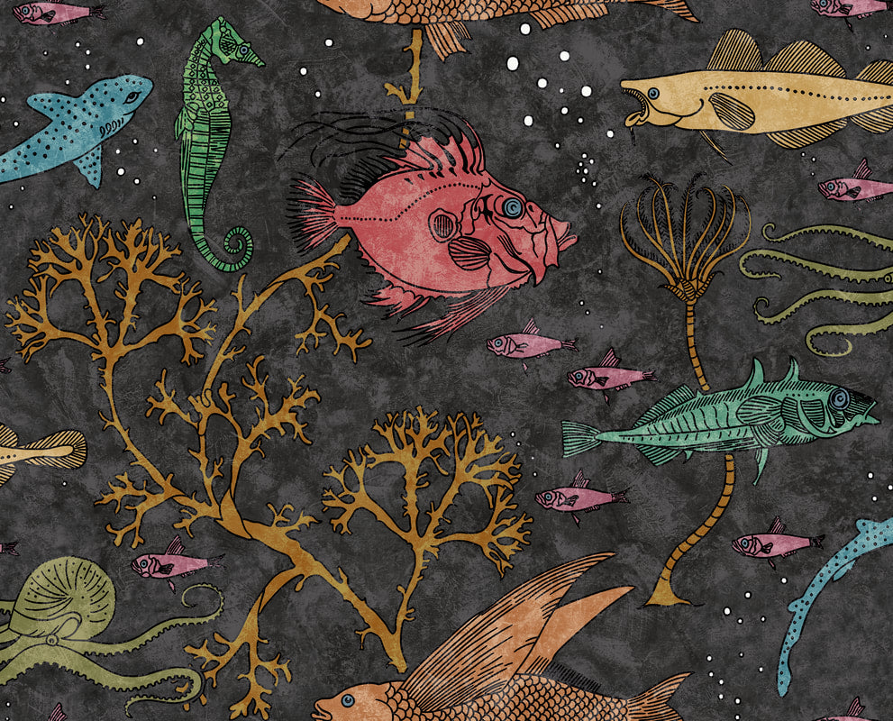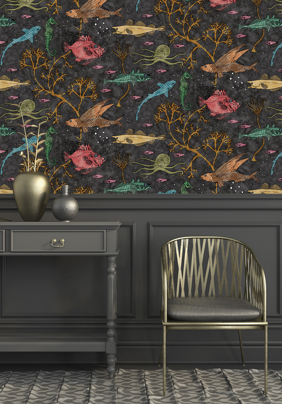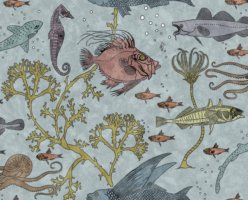 'John Dory' by C.F.A.Voysey features a fantastical underwater scene of a colourful fish. This stunning pattern is faithfully reproduced from the original watercolour by Charles Voysey painted in 1927.