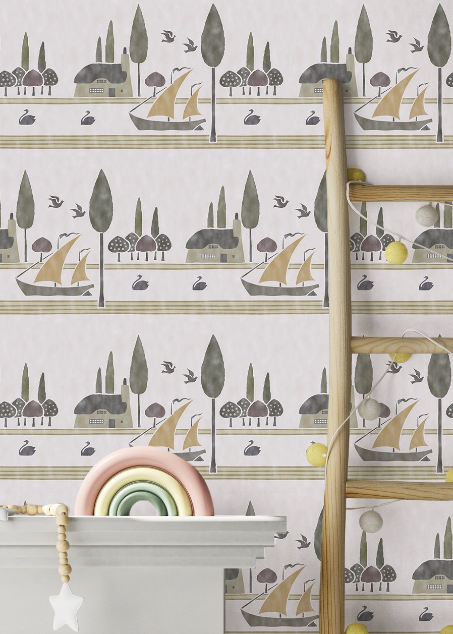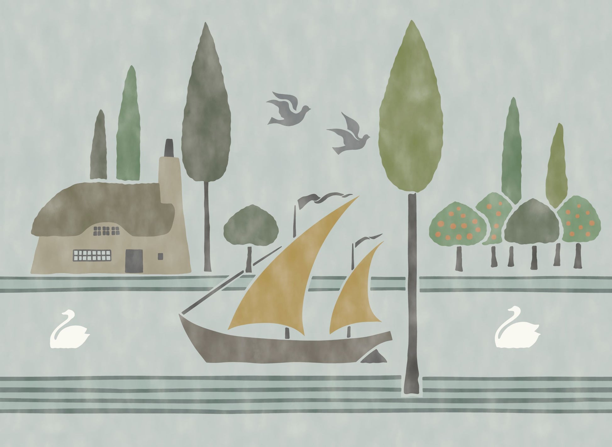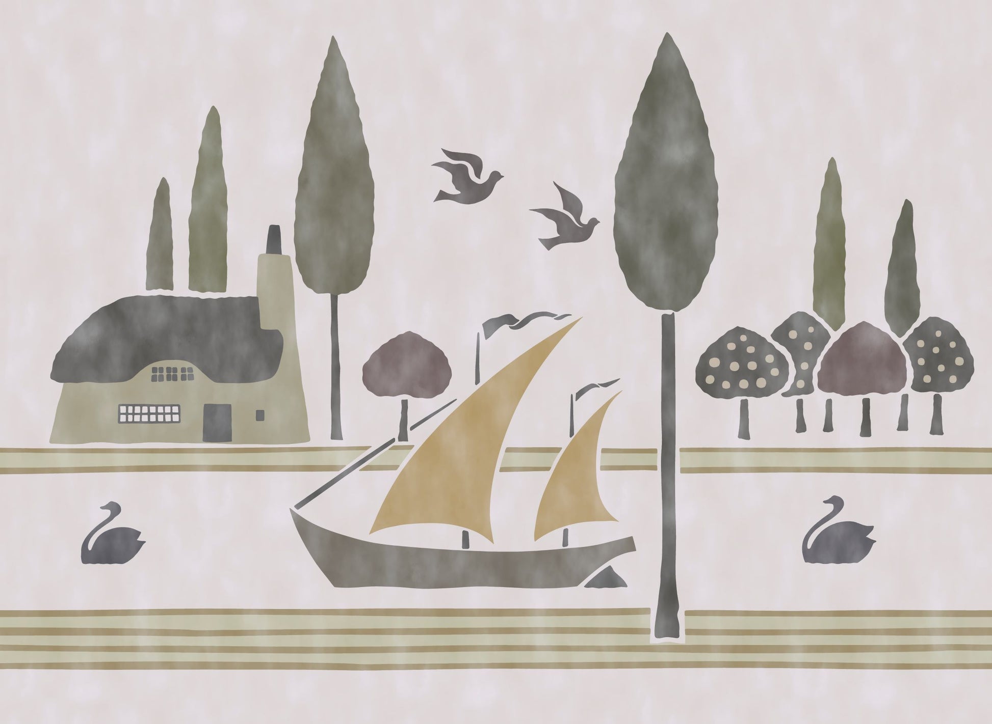 'Morning Walk' by C.F.A.Voysey features a charming watercolour of an idealized rural scene.
