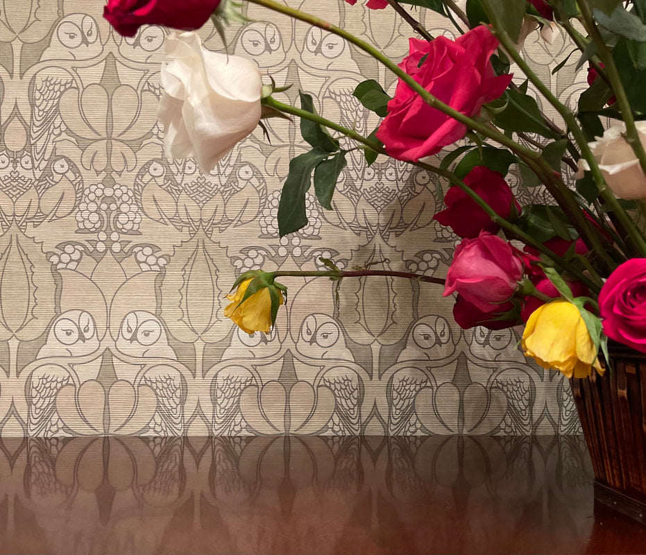 'Natural Owl' by C.F.A.Voysey features a delightful owls & chicks scene, faithfully reproduced from the original design by Charles Voysey, the famous English architect and textile designer.
