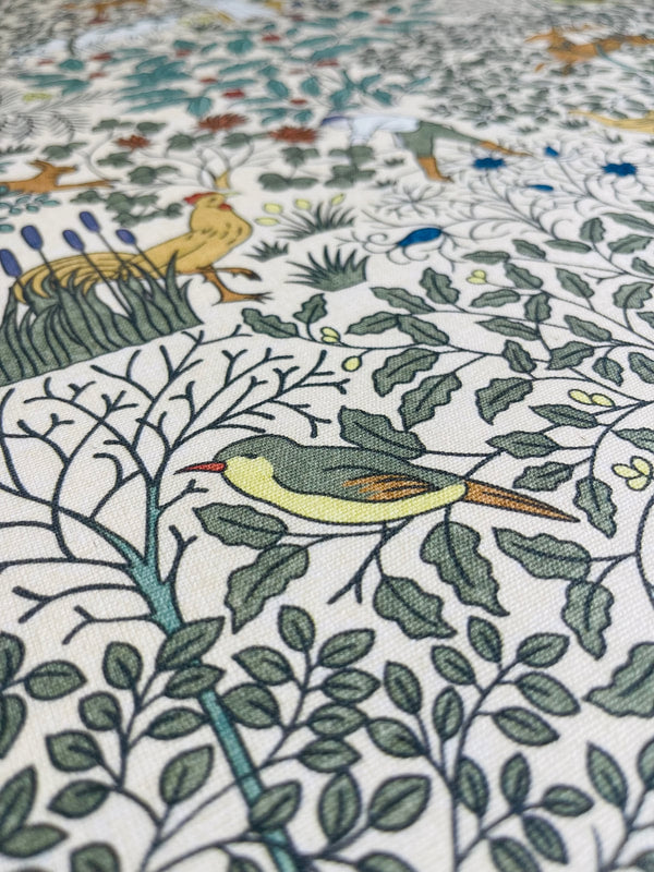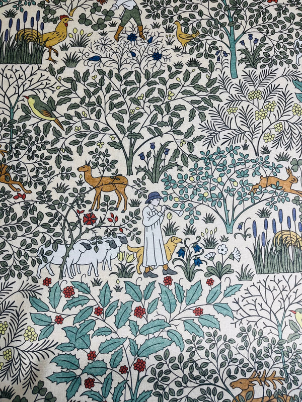 'The Shepherd' by C.F.A.Voysey creates a charming rural scene with animals, birds and foliage from the English farm & forest. This beautiful pattern is faithfully reproduced from the original designed by Charles Voysey the famous English architect and textile designer.
