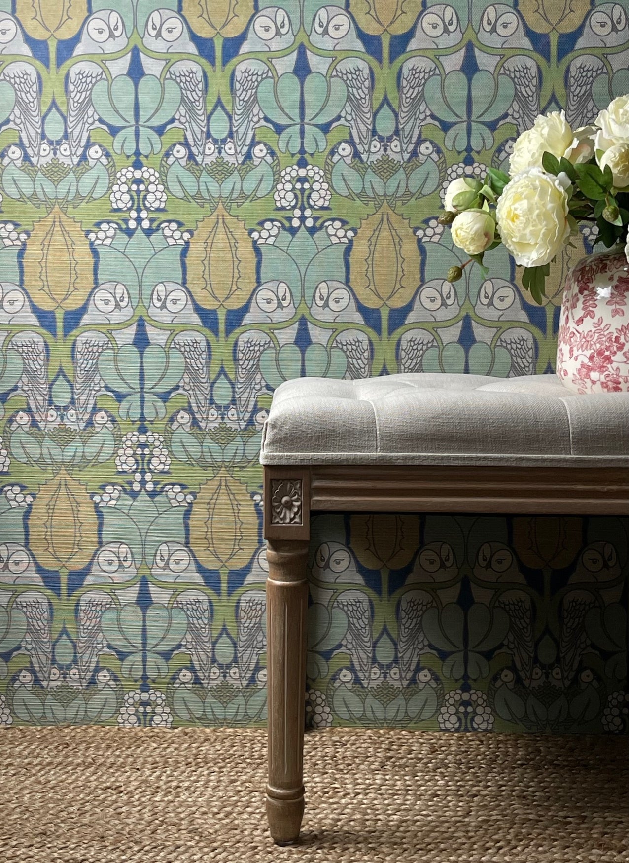 'The Owl' by C.F.A.Voysey features a delightful owls & chicks scene, faithfully reproduced from the original design by Charles Voysey, the famous English architect and textile designer.