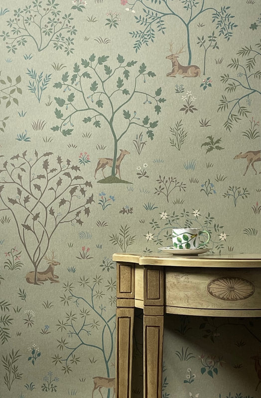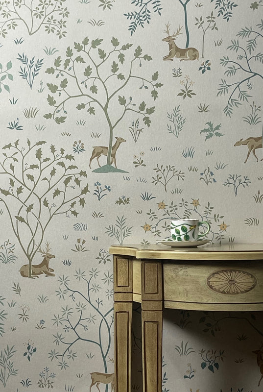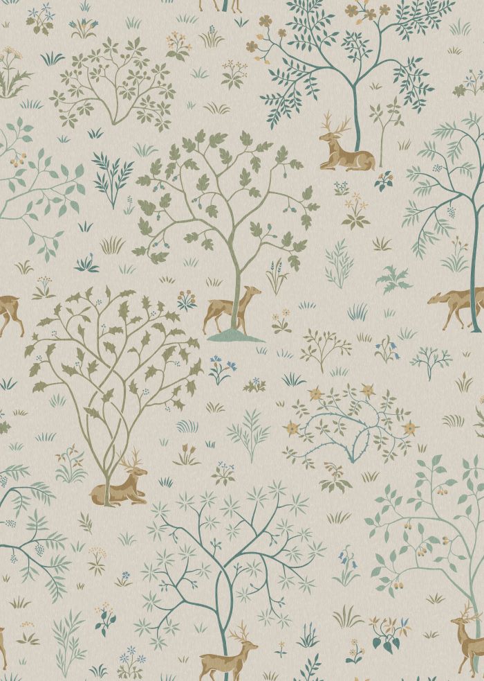 'The Ballard' by C.F.A.Voysey celebrates the famous 'Ballard Tapestry' that Voysey designed in 1908, its pleasing deer and stag set in an English landscape, creates the most elegant of patterns for your home.