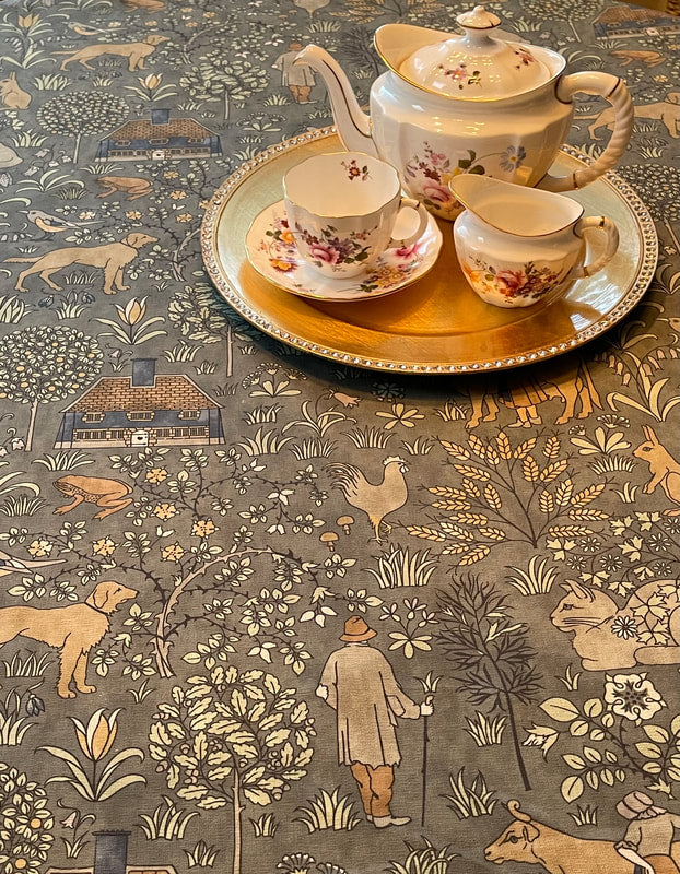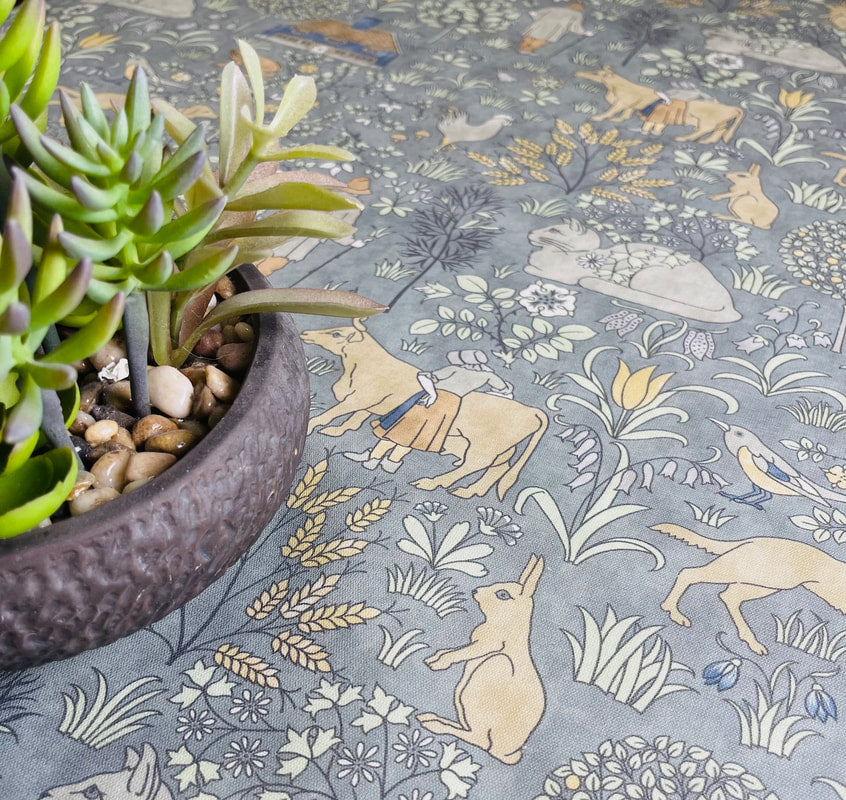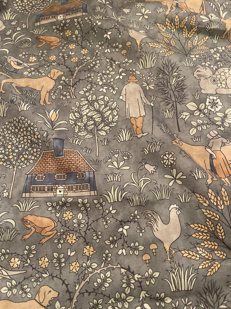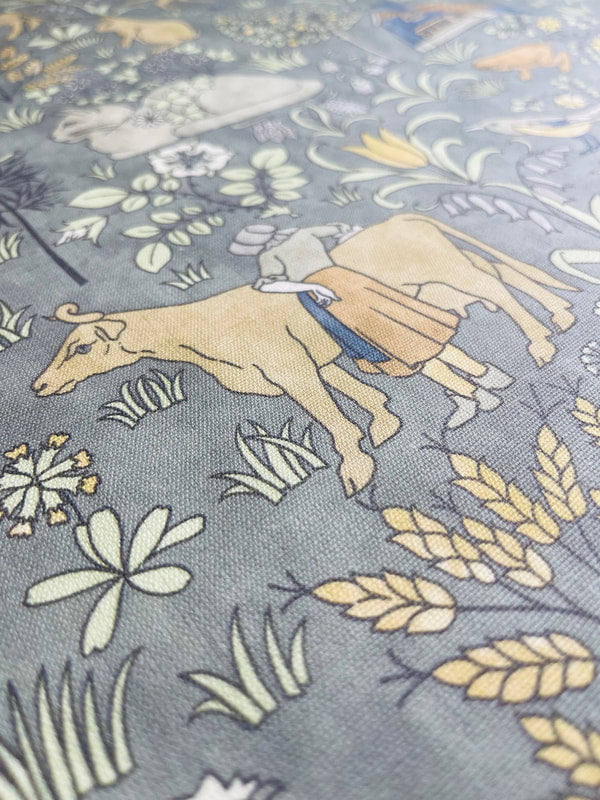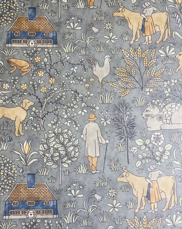 'The House That Jack Built' by C.F.A.Voysey features a delightful English farm, with beautifully drawn animals & flowers. This stunning pattern is faithfully reproduced from the original watercolour by Charles Voysey painted in 1929.