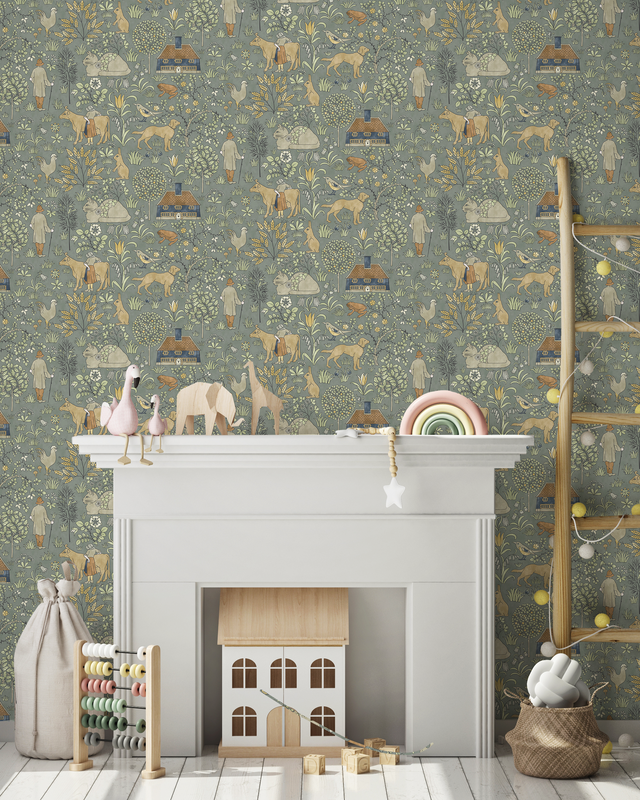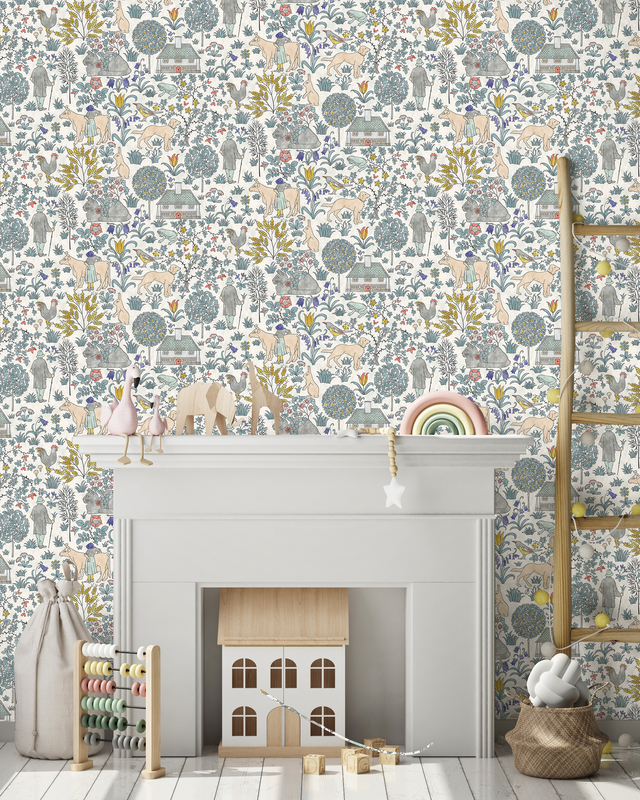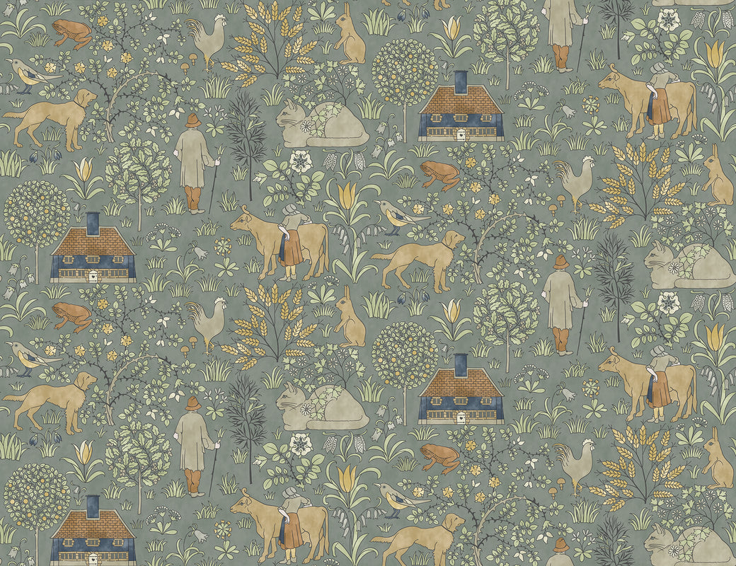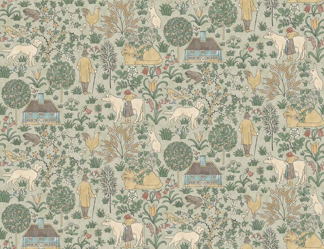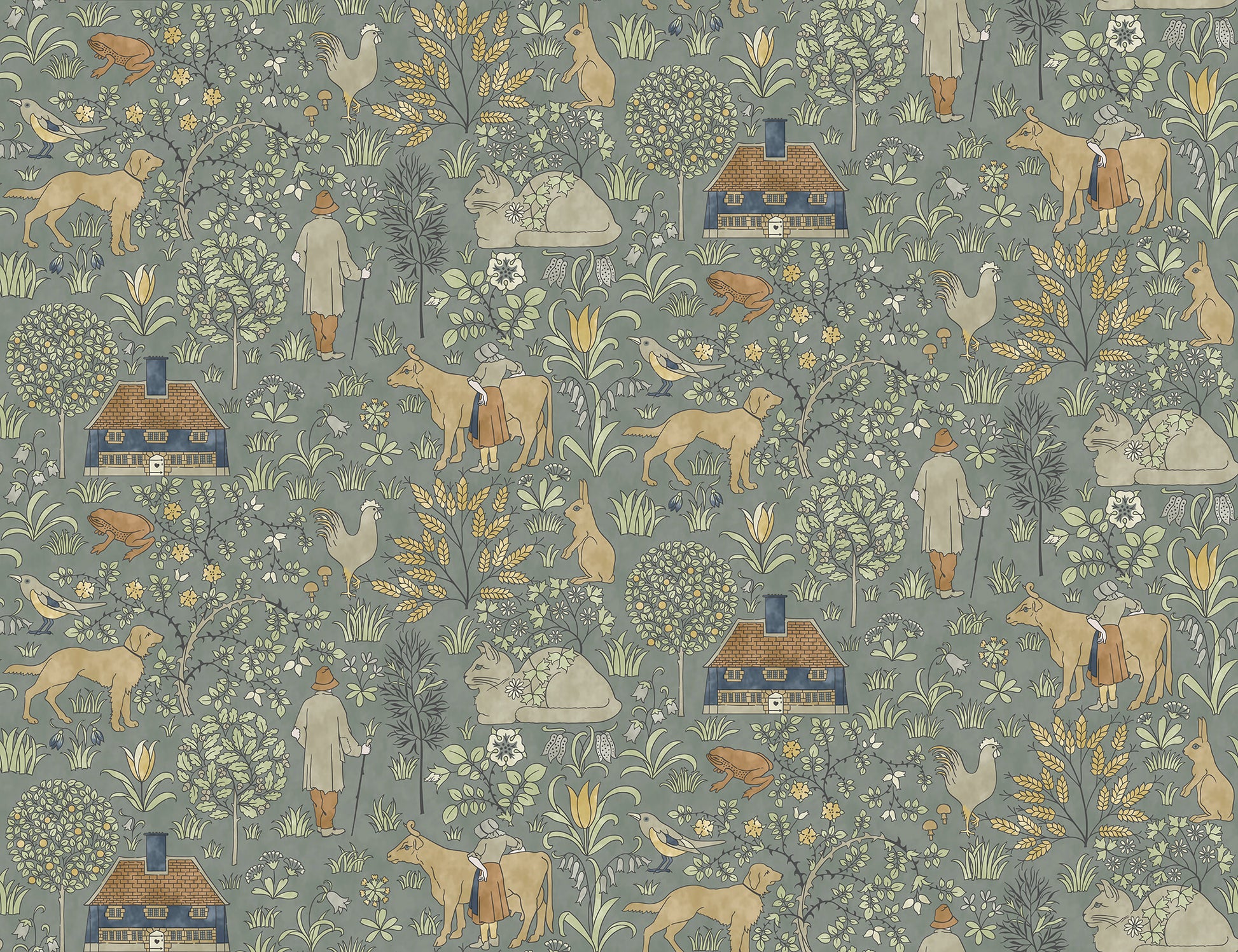 'The House That Jack Built' by C.F.A.Voysey features a delightful English farm, with beautifully drawn animals & flowers. This stunning pattern is faithfully reproduced from the original watercolour by Charles Voysey painted in 1929.